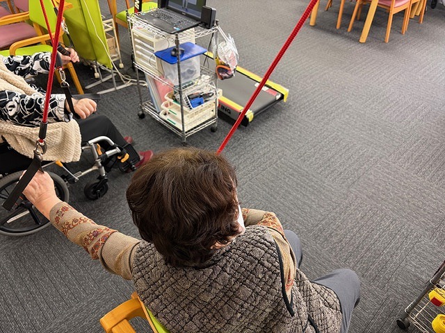 職員の元気な合いの手(?)が入りつつしっかりとお身体を動かしていきます。