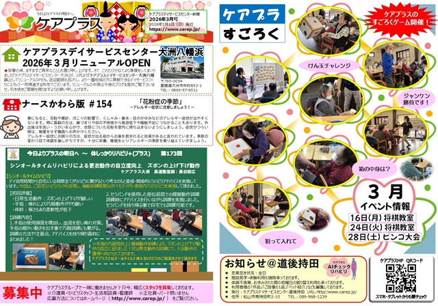 ケアプラス道後持田新聞 2026年3月号が更新されました!