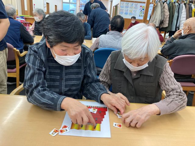 今週は「ひな人形の間違い探し」というテーマなので「明日はひなまつりだね。」などの声も聞こえてきたり、他の利用者様の応援をするなどしてみんなが楽しめたスーパーガンバ