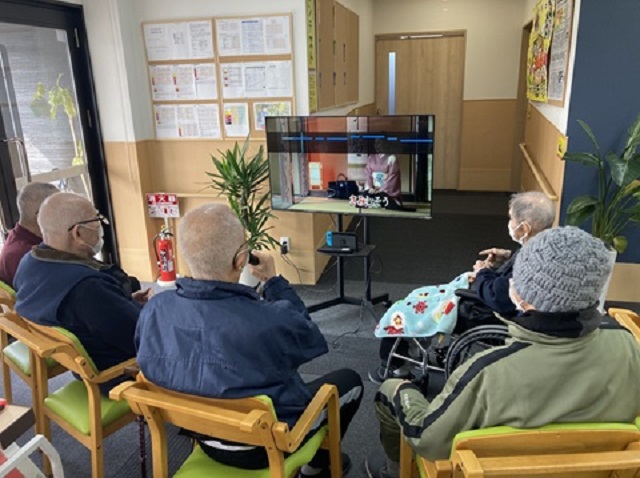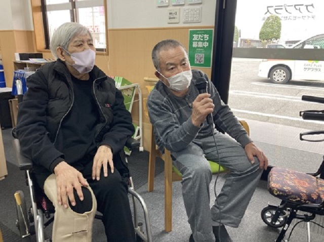 ケアプラスでは、午後からの余暇活動においてカラオケを行っております。他の方が歌う懐かしい歌を聴いて口づさむだけでも、聞く専門でも、盛り上げ拍手専門でもかまいません。皆様で楽しんで健康維持につながるお手伝いができればと思っています。