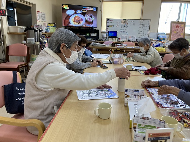塗り絵やゲームで、楽しみながら行うリハビリにも取り組んでいます。
