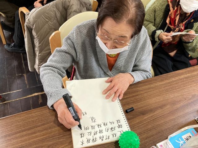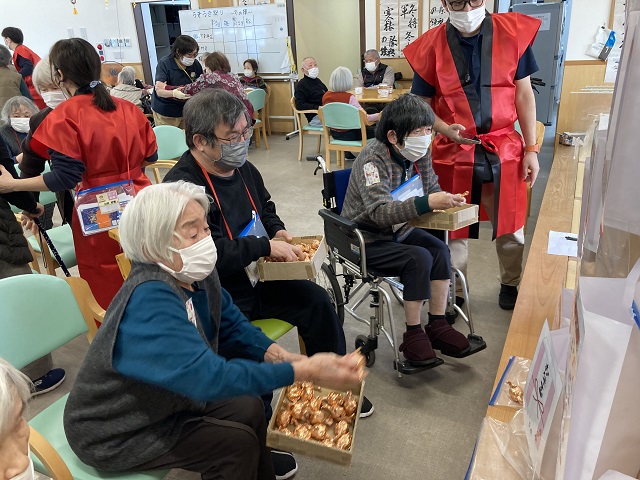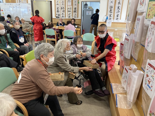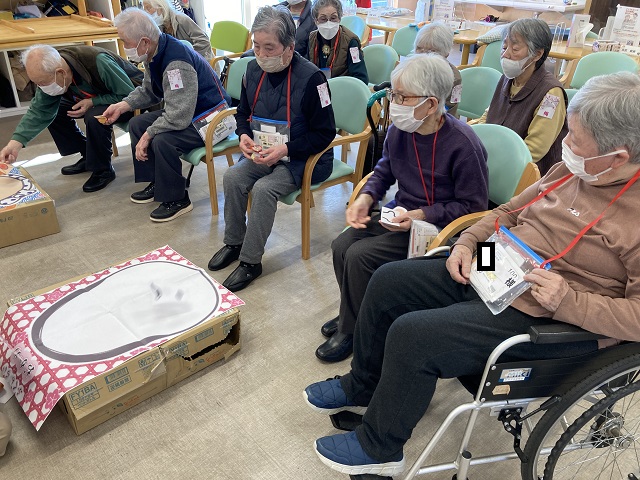 ケアプラス西条での「心うきうき祭り〜冬の陣~」は今回が初めての開催となりましたが、これまでの季節イベントと同様、ご利用者さまに大変喜んでいただける時間となりました。