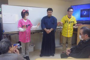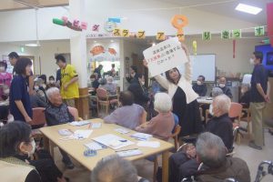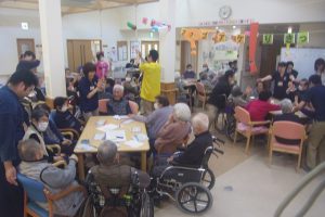 さて、今月行われた行事についてご紹介いたします。まずは毎月皆さまが楽しみにされている尾崎先生による音楽療法です。