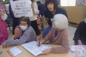 どのテーマにも答えの分かりにくい季語が隠れていたので、スタッフから野菜の旬の季節は?○○のよく咲いてる時期はいつ頃?と少しずつヒントを出しながら一緒に考えていきました。