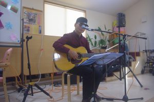 12月18日には『嶋本 慶 三線年忘れコンサート』が行われました。嶋本さんは松山在住の三線奏者で、様々な所で三線教室を開いておられます。夏以来の来訪に、ご利用者の皆様も職員もワクワクドキドキでした!(^^)!