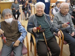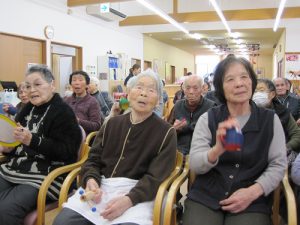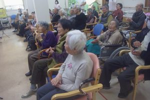 もちろん、ご利用者の皆様も知っている曲を歌われ、手拍子されたり合いの手を入れたりされて楽しまれていました。