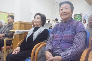 沖縄民謡の『安里屋ユンタ』から始まり、アンコールを含めて全17曲!『島唄』『涙そうそう』『花』『アリラン』『浜千鳥』『お富さん』などなど韓国民謡、唱歌、演歌と様々なジャンルの曲を三線で演奏しながら歌って下さいました。