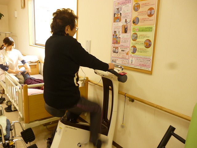 ケアプラス北宇和島には筋肉トレーニングのマシーンがありますので、利用者様と一緒に運動していきたいと思います。