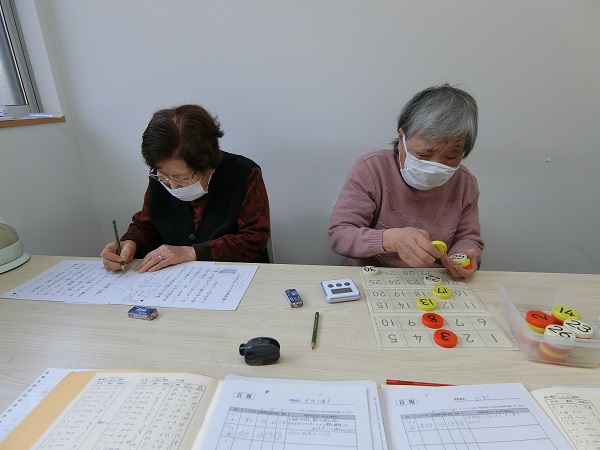 このようにケアプラスでは心うきうきしながら頭すっきり楽しく学習療法に取り組んでおります。