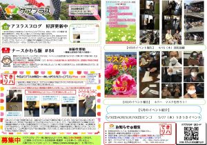 さて今回のブログでは、5月末にケアプラス垣生で行われたゲリライベントの様子を紹介します。5月27日水曜日、相談員の寺川さんと私で『心うきうきゲリライベント』を開催しました。