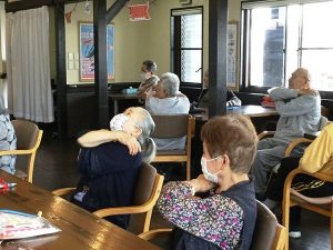 今回は利用者様方に順番にビンゴの玉を引いていただきました。なかなかビンゴにならなくても、自分で引いたから仕方ないと皆様、苦笑されていました。