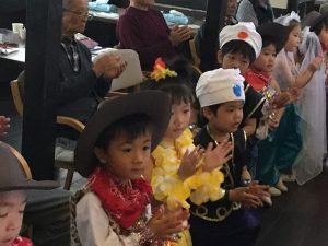 キラキラした様々な衣装のこのみっ子たちの踊りや唄に、ご利用者の皆様は満面の笑顔で喜ばれていました。