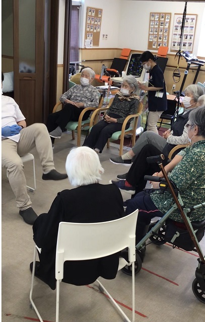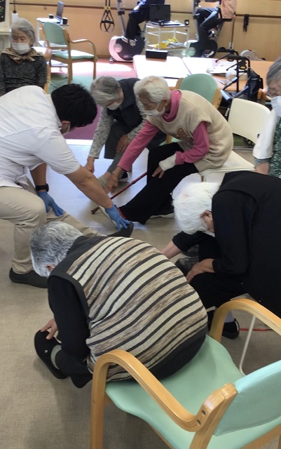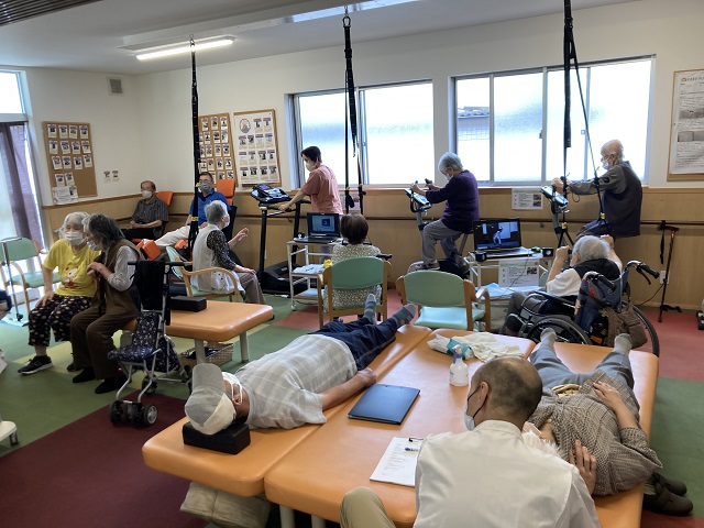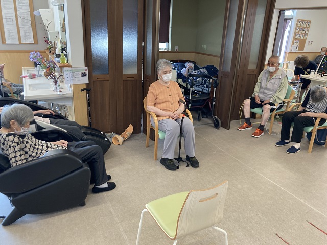 それでは蒸し暑い梅雨に負けずにデイでリハビリを行っている風景をお届けしたいと思います。