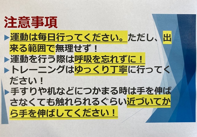 約1か月ごとに少しずつ回数や時間を増やし、新しいメニューを追加しているので参加されている皆さんの筋力や持久力も向上しています。