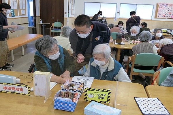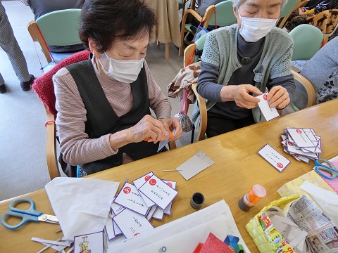 皆さん熱心に説明を聞いてくださり、お隣同士で「一人2個よ」「サッとつけたらええんよ」などなど、打ち合わせもしっかりしてくださいました。