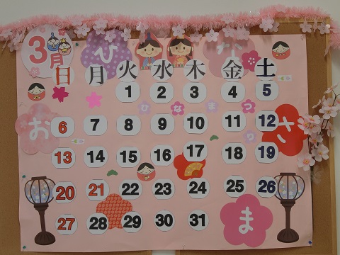 まずは3月のカレンダーですね。ピンクを基調とした雛祭りの雰囲気ある仕上がりになっております。