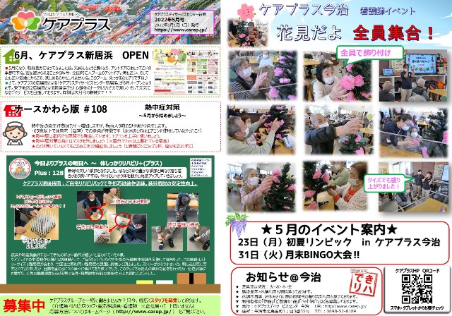 さて、お話変わって今月もケアプラス今治のご様子紹介です。(当たり前ですが、こちらがメイン)