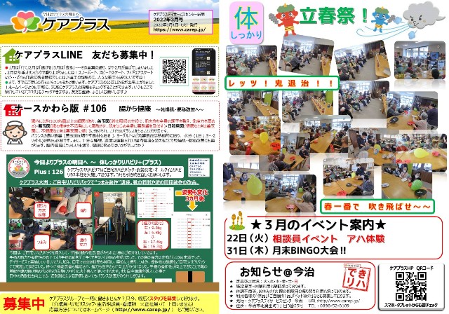 そんな春を感じる2月のケアプラス今治のイベントは節分イベントでした。