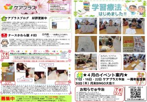 今、コロナウイルスでピリピリした世の中ですが、ケアプラス今治は利用者様にほっこりとした時間と空間、安全安心な環境を提供していけるよう努力しています。