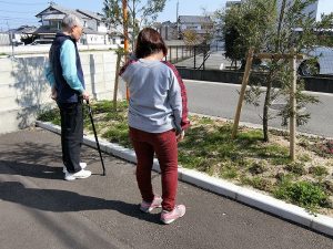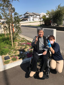 今治の相談員とオープン第1号の利用者様の屋外散歩の様子です。良い写真でしょ~!!
