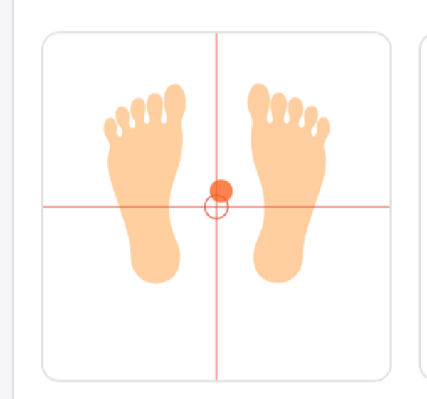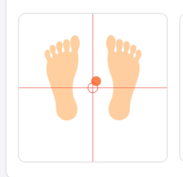 前向きになっている写真では数値が真ん中の重心よりも体の軸が右に少し傾いています。そのため左の体幹が硬くなっている可能性があります。
