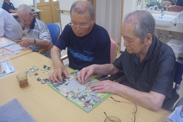 そして手先のリハビリも兼ねて、合間に机上でのパズルも意欲的に行われ