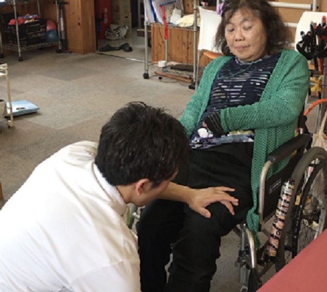 「今後は両腕が耳にピタッと付くぐらい手が上がるのを目標に頑張りましょう!」との提案に、少し照れたように笑みを浮かべ「はい」としっかりとした返事を頂きました