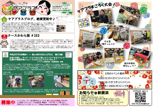 今回のブログはいかがだったでしょうか?ケアプラスデイサービスセンター新居浜では、季節に合わせたイベントやレクリエーション活動を行っております。