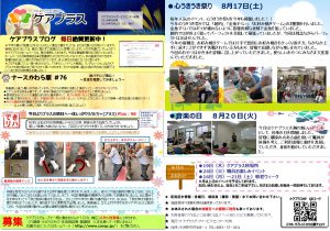 ケアプラス大洲、相談員の詰石です。9月に入りましたが、まだまだ暑さが残り汗ばむ時期ですね。