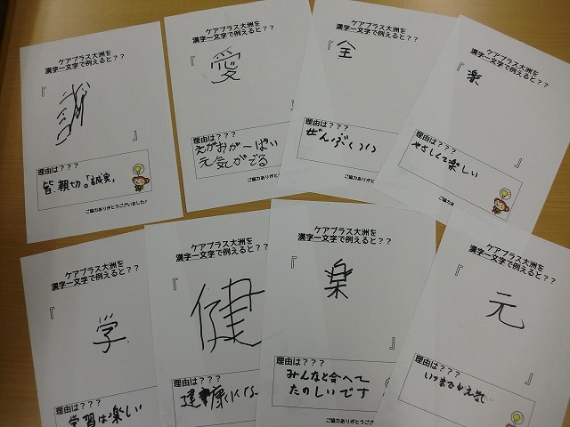 お題は…『ケアプラス大洲を漢字一文字で例えると?』です♪