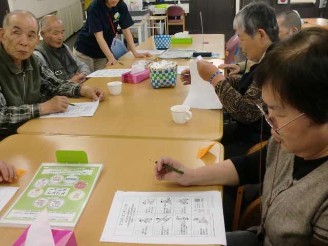 まずはロコモティブシンドローム(運動器の障害や衰えから移動能力が低下して要介護のリスクが高まること)の簡単なチェックリストで運動機能の状態を皆さんにチェックして頂いたのと筋肉に関するクイズを実施しました。