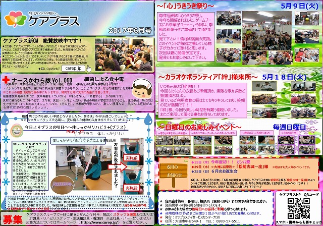 さて、今回のブログでは5月に行われたイベントのご紹介をしたいと思います。まずは9日(火)に行われました「ケアプラス心うきうきまつり」についてご紹介致します。