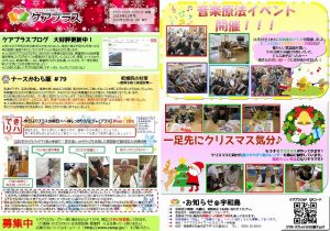 さて、今月の新聞は「音楽療法イベント」と「クリスマスに向けた創作レクレーション」についてお伝えしています。